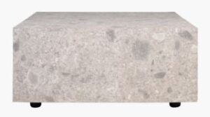 Tyylikäs kuutio-muotoinen sohvapöytä, jossa on kestävä rakenne minimalistisessa designissa, joka sopii useimpiin tyyleihin. Pöytä on valmistettu korkeapaine laminateista, jossa on terrazzo-ilme, mikä antaa tunteen luonnonmateriaaleista. Pöytä tulee neljän matalan jalan kanssa, mikä luo illuusion siitä, että pöytä leijuu hieman lattian ylle, antaen sille kevyen ja ilmavan vaikutelman.