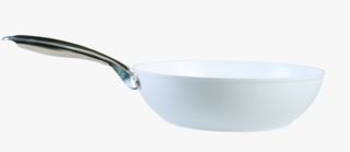 Valkoinen wokkipannu kierrätetystä alumiinista. 2-kerroksinen keraaminen pinnoite ilman haitallisia kemikaaleja ja ilman PFAS-yhdisteitä.